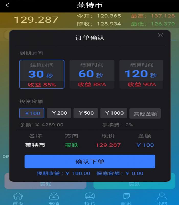 137.比特币,莱特币,股票外汇币圈点位盘带风控可封装APP 买涨买跌时间盘