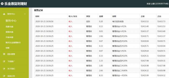 以上是乐金惠平台模式介绍;中国的金融虚拟币商业理财模式,乐金惠具有独特的理财思想,短期收入,中期团队获利,和后期的分红收益,让理财这不会有疲乏的感觉。