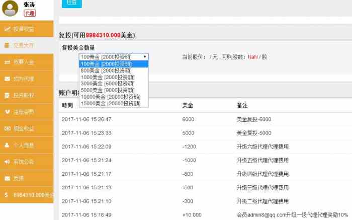 六级代理:代理费2万元,投资限额300000元 (特别注意六级代理需要达到直推30人团队200人客服申请才可以开通-然后由公司返回8888元作为奖励)