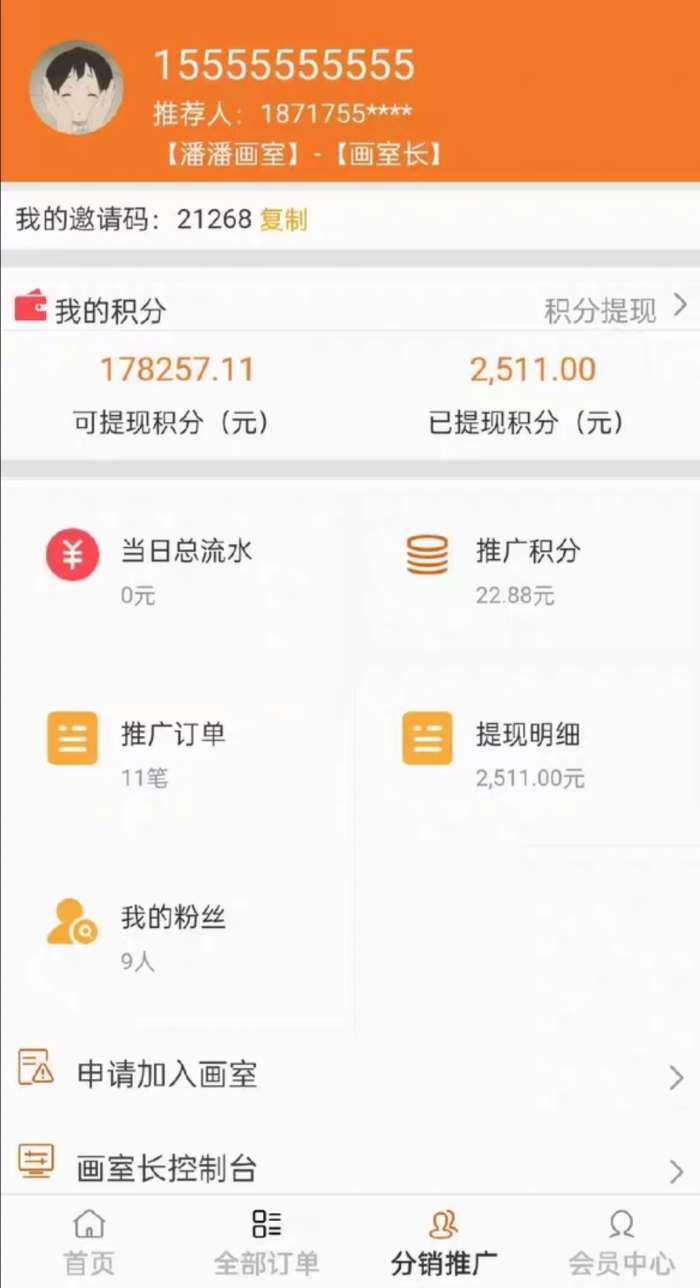 用户推广也有佣金收入,成为画室长享有团队业绩的分红