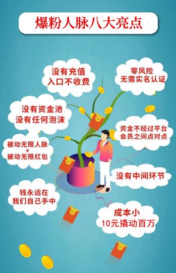 爆粉人脉高级版爆粉裂变倍增人脉是一个微信爆粉+赚钱的游戏工具。它是一个微信红包交友互助投资模式,人人可做,被动收入+被动倍增人脉!每一个加您微信的好友会自动给您发红包!